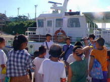 | 参加費 大人(中学生以上) 2000円 子ども(小学生) 1000円 幼児 無料 ・・・往復船賃、バーベキュー代 こみ・・・ ※前売り券 300枚限定 朝早くから雨が降り出し、雨の 中のイベントとなりました。昼か ら晴れて、各会場からは元気な 歓声があがっていました。 前売り券は完売、当日券参加 者を含め約450名の参加でした。 |