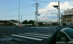 | 霧島温泉めざして,鹿児島市内を抜ける タイヤ,チューブ交換の間に近くのバーガーショップで昼食を取る。レッド○○○を出発する時には午後3時半 を過ぎようとしていた。繁華街を通り抜けて,私学校跡を正面に見ながら右折して錦江湾沿いを北上する。 途中の建物の間から見え隠れする桜島。鹿児島市には仕事でつい3ヶ月前に来たばかりだが,力感あふれる その山容は,いつ見ても言いしれぬ感動を覚える。錦江湾に悠然と浮かぶ姿自体が,「素晴らしい」の一言だ。 |