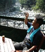 | 入浴後テラスでくつろぐ | うーん,この心地よさ | かずら橋に向けて出発 |