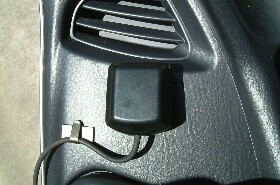 | ナビのアンテナは左側の小物入れの上 | ナビ本体をマジックテープで固定してできあがり |